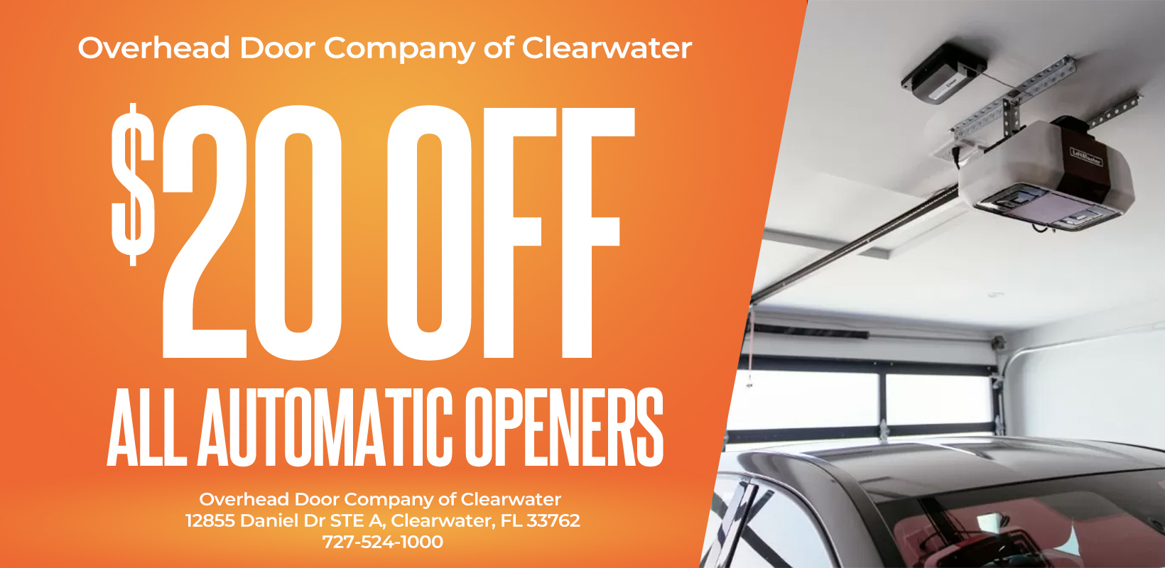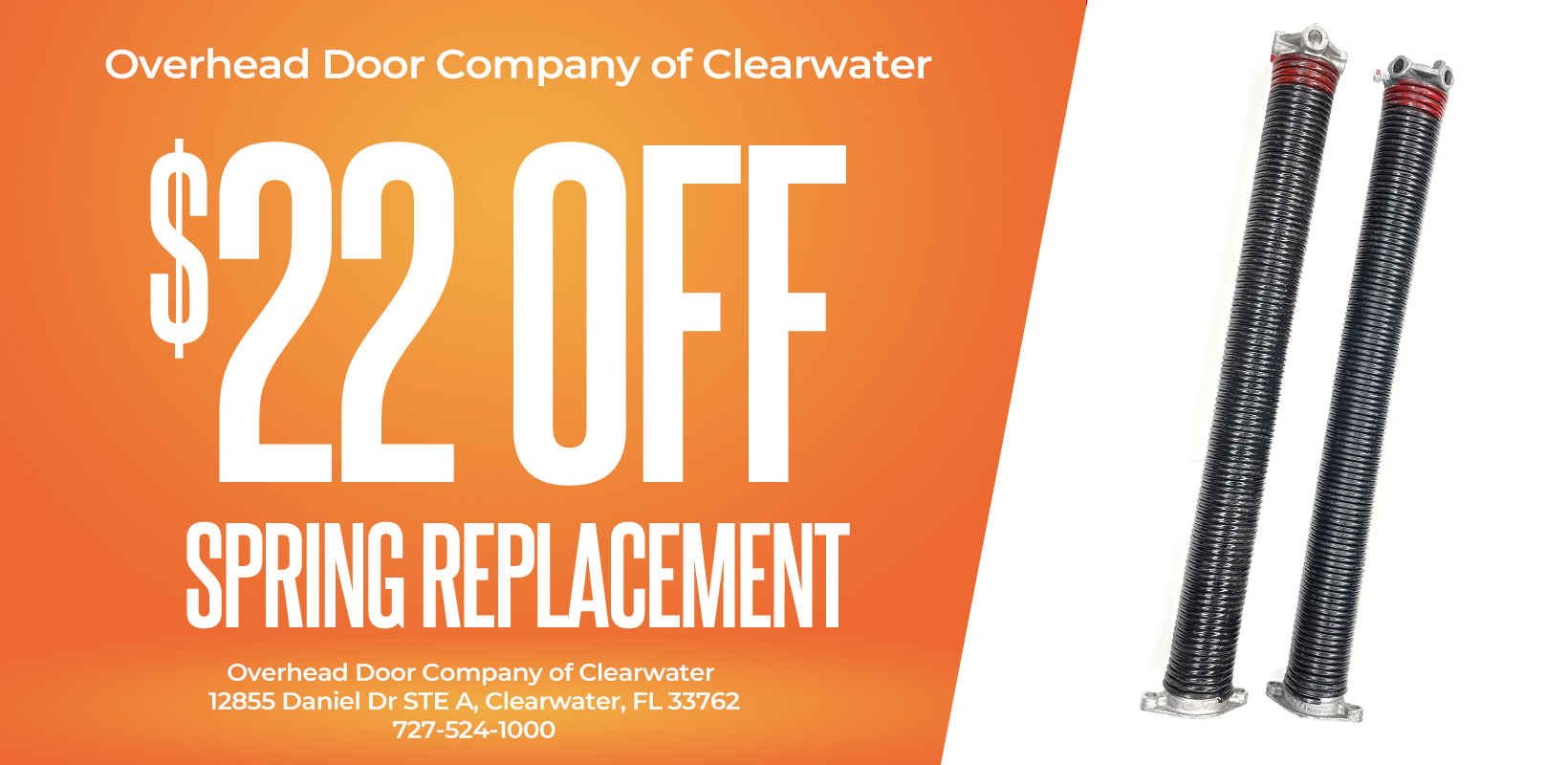 Overhead Door Clearwater offers special discounts on automatic openers, spring replacements, and service calls.